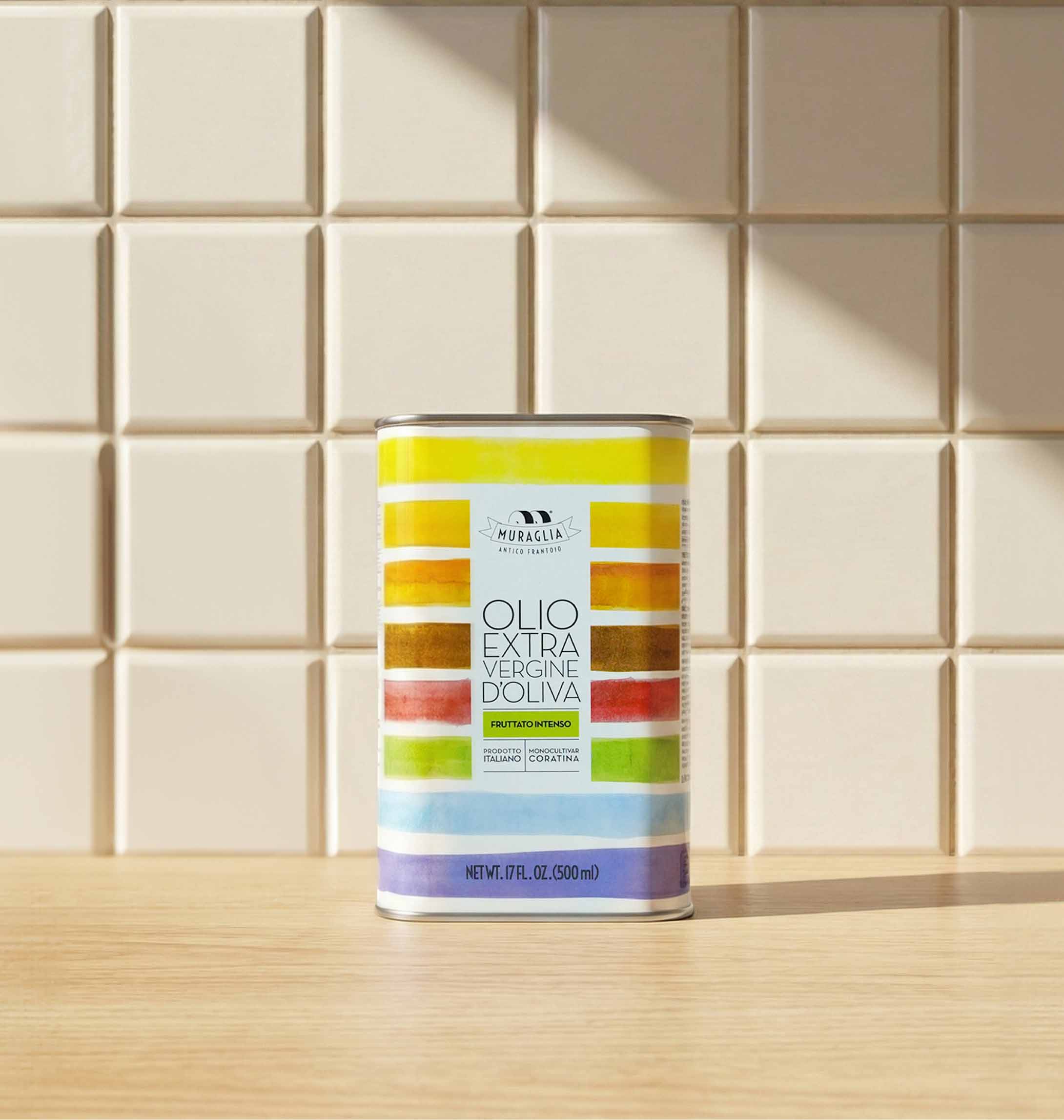 La lattina arcobaleno ha un fascino vintage perfetto da regalare o regalarti. Al suo interno tutta l’eccellenza del nostro Olio Extravergine d’Oliva Fruttato Intenso, realizzato con olive 100% italiane della varietà Coratina. Un olio che si distingue per il suo sapore deciso, perfetto per esaltare qualsiasi piatto.